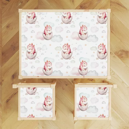 Varázsold egyedivé gyermeked IKEA LATT asztalát és a hozzá tartozó székeket, ezzel a bébi dinoszaurusz nevű stílusos bútormatrica szettel! Ezek a speciális matricák amellett, hogy dekorálnak, játékfelületként is funkcionálhatnak. Szuper könnyen felvihetőek és kizárólag környezetbarát anyagokból készülnek.
