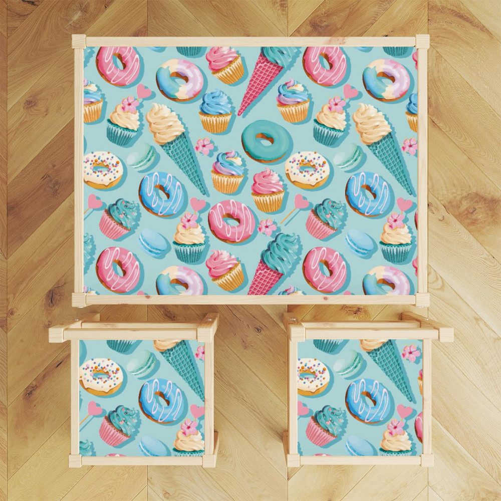 Varázsold egyedivé gyermeked IKEA LATT asztalát és a hozzá tartozó székeket, ezzel a édességek nevű stílusos bútormatrica szettel! Ezek a speciális matricák amellett, hogy dekorálnak, játékfelületként is funkcionálhatnak. Szuper könnyen felvihetőek és kizárólag környezetbarát anyagokból készülnek.