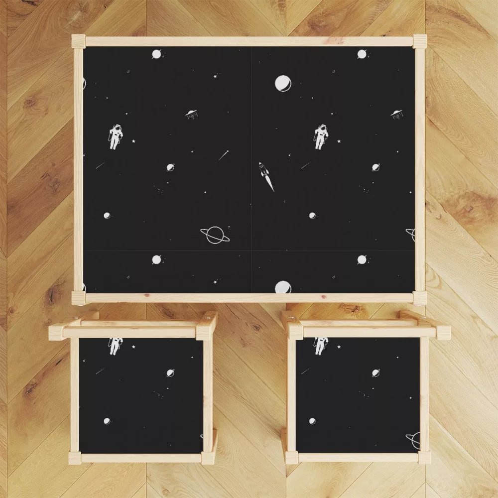 Varázsold egyedivé gyermeked IKEA LATT asztalát és a hozzá tartozó székeket, ezzel a űrséta nevű stílusos bútormatrica szettel! Ezek a speciális matricák amellett, hogy dekorálnak, játékfelületként is funkcionálhatnak. Szuper könnyen felvihetőek és kizárólag környezetbarát anyagokból készülnek.
