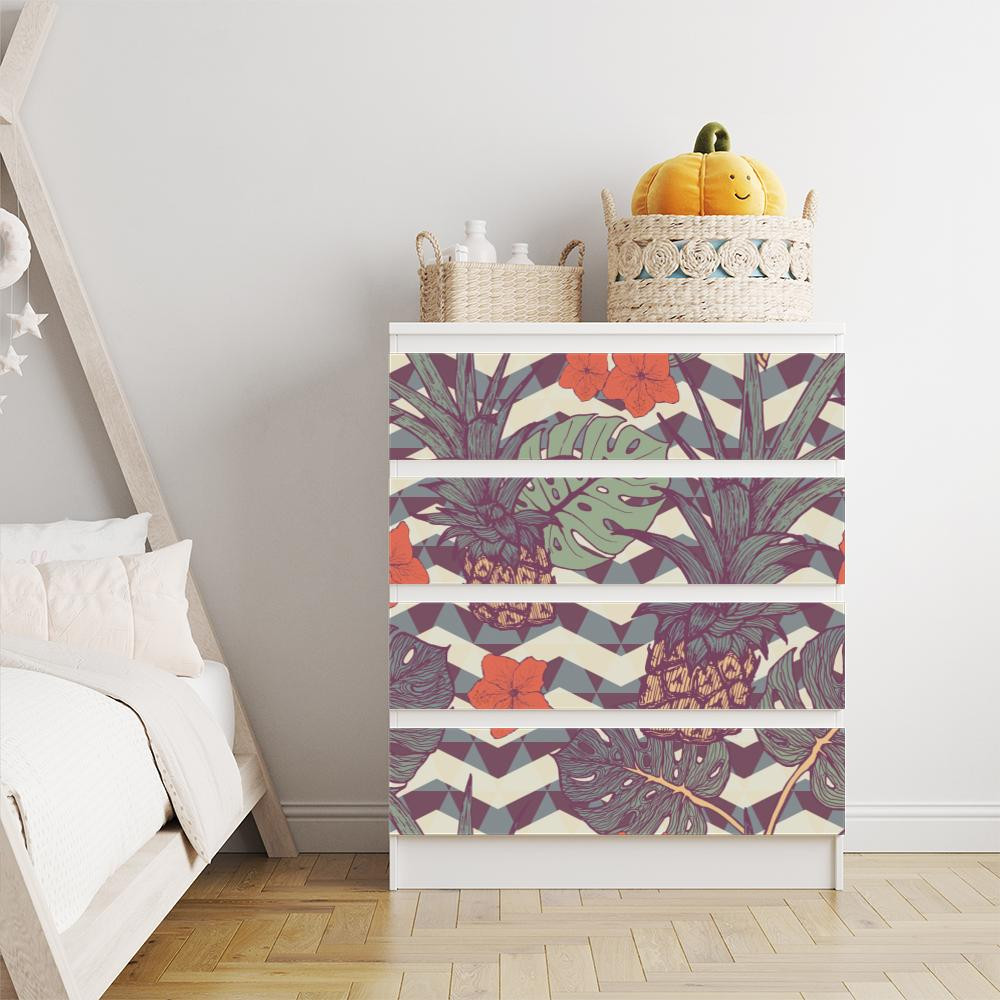 Az IKEA MALM ananászok és virágok bútorfólia/bútormatrica remek megoldást kínál az otthoni bútorok egyediségének fokozására. Bútormatricáink számos lenyűgöző mintával elérhetők. A matrica könnyen felhelyezhető és védő laminátum réteggel van ellátva, amely megvédi a felületét a karcolásoktól és a napfény káros hatásaitól. A matrica változatos méretben kapható, így könnyen illeszkedik az IKEA Malm bútorok különböző típusaihoz. Egyedi jellegével és tartósságával hosszú éveken át az otthon dísze lesz.