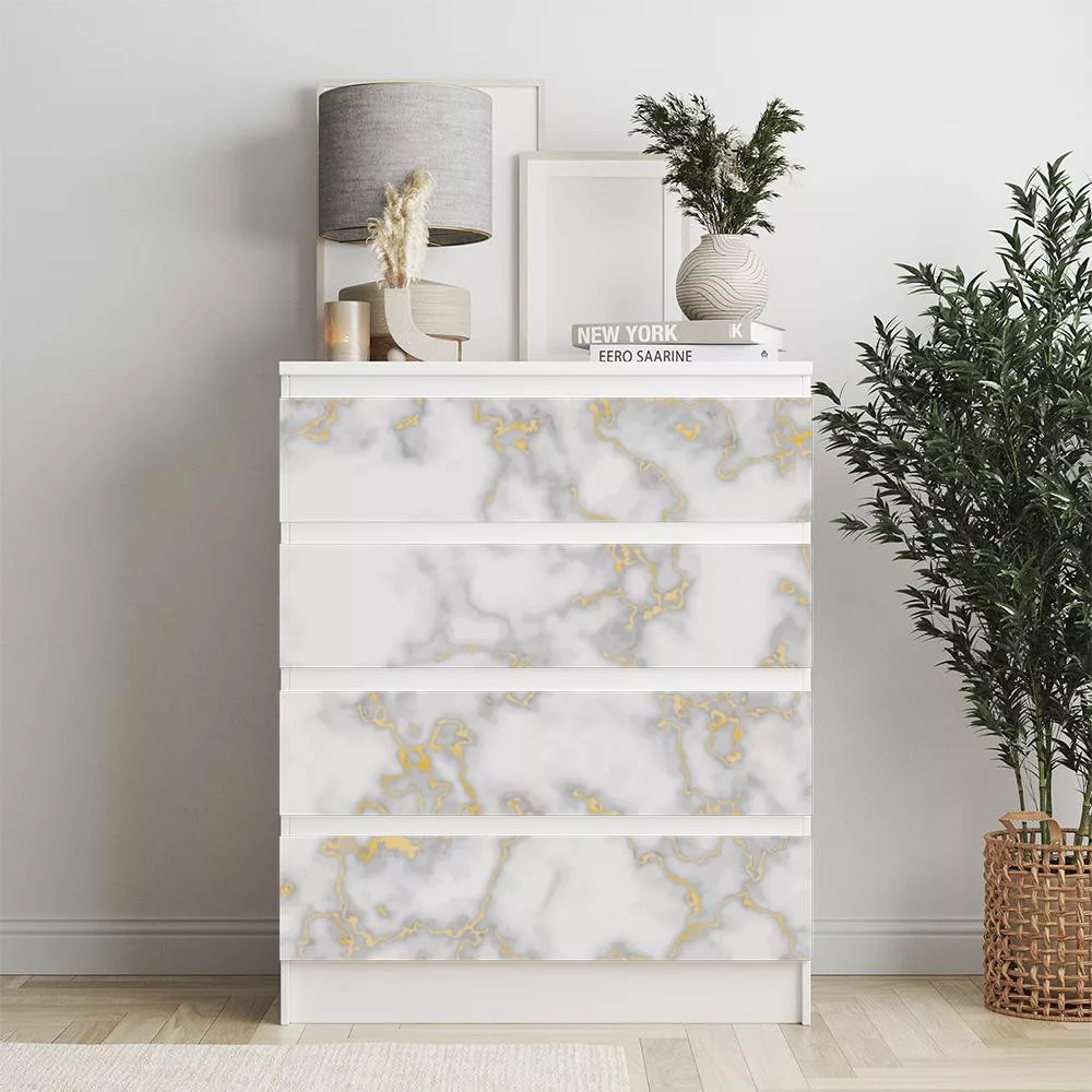 Az IKEA MALM arany márvány bútorfólia/bútormatrica remek megoldást kínál az otthoni bútorok egyediségének fokozására. Bútormatricáink számos lenyűgöző mintával elérhetők. A matrica könnyen felhelyezhető és védő laminátum réteggel van ellátva, amely megvédi a felületét a karcolásoktól és a napfény káros hatásaitól. A matrica változatos méretben kapható, így könnyen illeszkedik az IKEA Malm bútorok különböző típusaihoz. Egyedi jellegével és tartósságával hosszú éveken át az otthon dísze lesz.