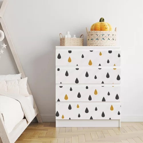 Az IKEA MALM aranyló esőcseppek bútorfólia/bútormatrica remek megoldást kínál az otthoni bútorok egyediségének fokozására. Bútormatricáink számos lenyűgöző mintával elérhetők. A matrica könnyen felhelyezhető és védő laminátum réteggel van ellátva, amely megvédi a felületét a karcolásoktól és a napfény káros hatásaitól. A matrica változatos méretben kapható, így könnyen illeszkedik az IKEA Malm bútorok különböző típusaihoz. Egyedi jellegével és tartósságával hosszú éveken át az otthon dísze lesz.