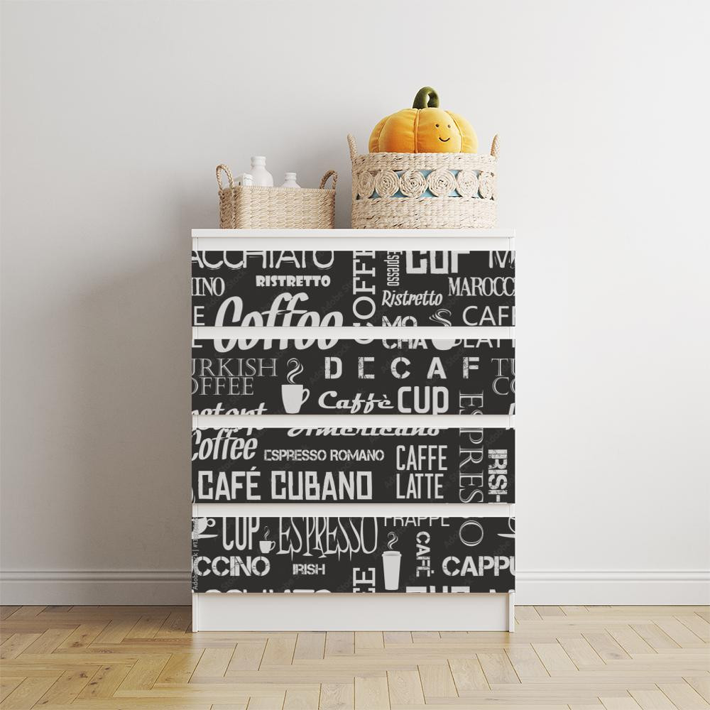 Az IKEA MALM kávéházi feliratok bútorfólia/bútormatrica remek megoldást kínál az otthoni bútorok egyediségének fokozására. Bútormatricáink számos lenyűgöző mintával elérhetők. A matrica könnyen felhelyezhető és védő laminátum réteggel van ellátva, amely megvédi a felületét a karcolásoktól és a napfény káros hatásaitól. A matrica változatos méretben kapható, így könnyen illeszkedik az IKEA Malm bútorok különböző típusaihoz. Egyedi jellegével és tartósságával hosszú éveken át az otthon dísze lesz.