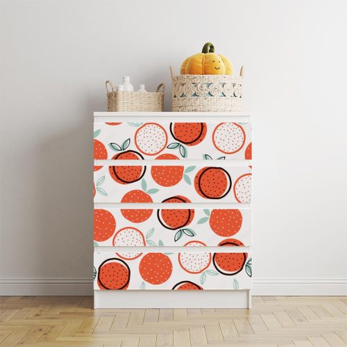 Az IKEA MALM narancsok és körök bútorfólia/bútormatrica remek megoldást kínál az otthoni bútorok egyediségének fokozására. Bútormatricáink számos lenyűgöző mintával elérhetők. A matrica könnyen felhelyezhető és védő laminátum réteggel van ellátva, amely megvédi a felületét a karcolásoktól és a napfény káros hatásaitól. A matrica változatos méretben kapható, így könnyen illeszkedik az IKEA Malm bútorok különböző típusaihoz. Egyedi jellegével és tartósságával hosszú éveken át az otthon dísze lesz.