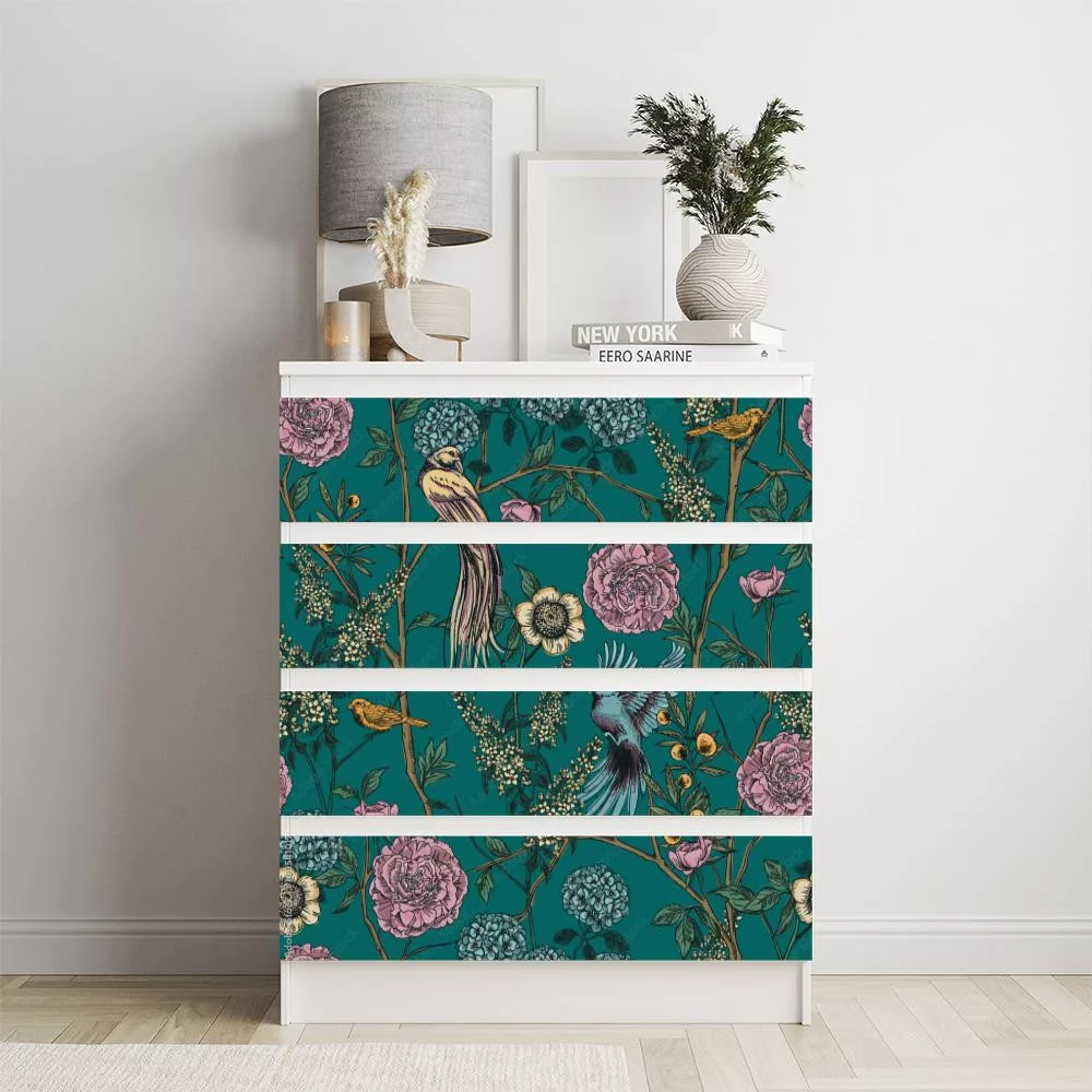 Az IKEA MALM viktoriánus virágkert bútorfólia/bútormatrica remek megoldást kínál az otthoni bútorok egyediségének fokozására. Bútormatricáink számos lenyűgöző mintával elérhetők. A matrica könnyen felhelyezhető és védő laminátum réteggel van ellátva, amely megvédi a felületét a karcolásoktól és a napfény káros hatásaitól. A matrica változatos méretben kapható, így könnyen illeszkedik az IKEA Malm bútorok különböző típusaihoz. Egyedi jellegével és tartósságával hosszú éveken át az otthon dísze lesz.